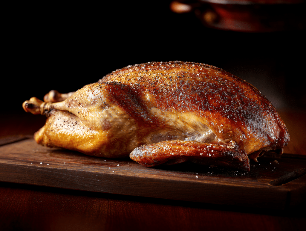 - Zieltemperatur: Nutzen Sie ein Fleischthermometer. Bei einer Kerntemperatur von 60–62 °C ist die Brust innen rosa (medium). Bei ca. 70 °C ist sie durchgebraten.